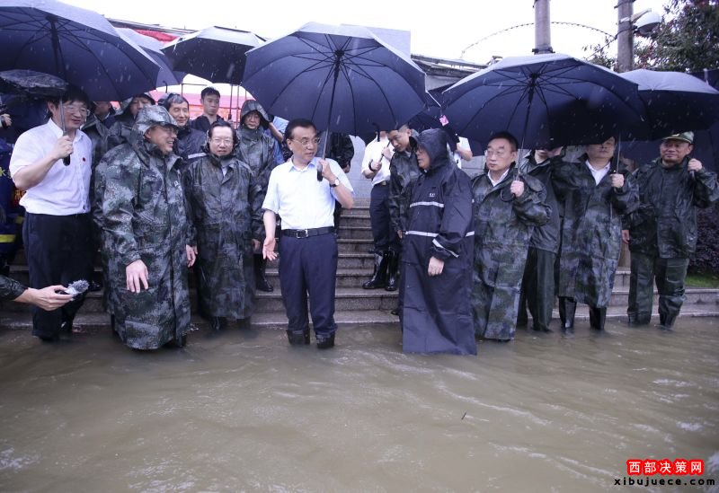 李克強冒大雨在武漢長江干堤現(xiàn)場指揮搶險救災(zāi)