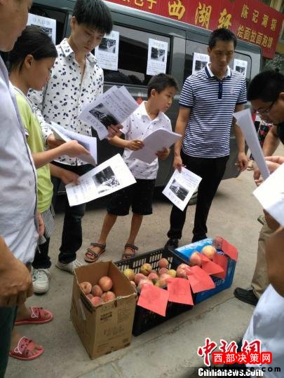 陳國(guó)西“贈(zèng)桃尋妻”的舉動(dòng)引來不少路人幫忙散發(fā)尋人啟事。韓章云 攝