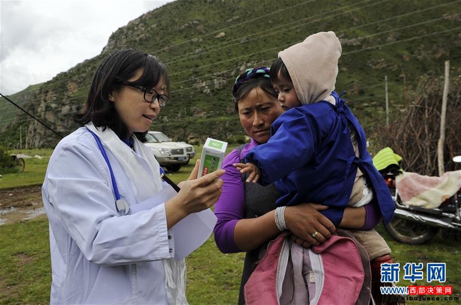 7月17日,北京大學(xué)第三醫(yī)院婦產(chǎn)科李華教授(左)在巴爾卡村牧區(qū)向農(nóng)牧民贈送藥品。當(dāng)日,來自北京協(xié)和醫(yī)院、北京大學(xué)人民醫(yī)院、北京大學(xué)第三醫(yī)院等醫(yī)院的12名援藏醫(yī)療專家深入偏遠(yuǎn)的墨竹工卡縣門巴鄉(xiāng)巴爾卡村,為農(nóng)牧民義診。新華社記者 張汝鋒 攝
