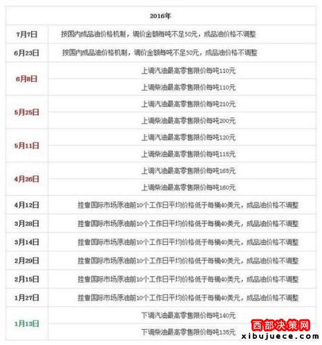 國家發(fā)改委歷次成品油價格調整匯總表。來源:隆眾石化網