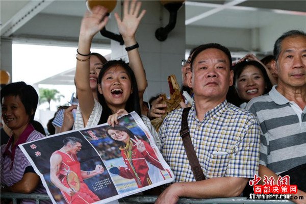 8月29日,里約奧運會國家奧運精英代表團抵達澳門,展開一連4天的訪問行程,與澳門市民近距離交流。 中新社記者 張宇 攝