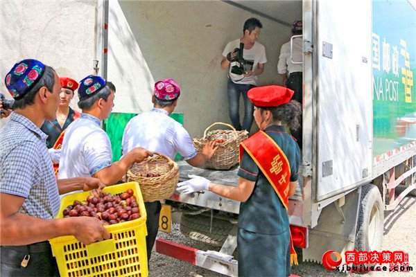 五堡鎮(zhèn)拉甫喬克村的棗農(nóng)通過(guò)郵政外銷大棗