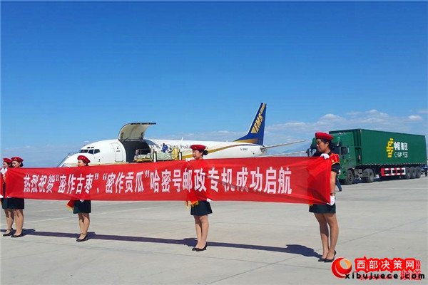 9月12日19:32分,一架裝載“密作”哈密古棗、“密作”哈密貢瓜的郵政專機(jī)從新疆哈密機(jī)場(chǎng)啟航首航廣東,將于13日凌晨抵達(dá)深圳機(jī)場(chǎng)。