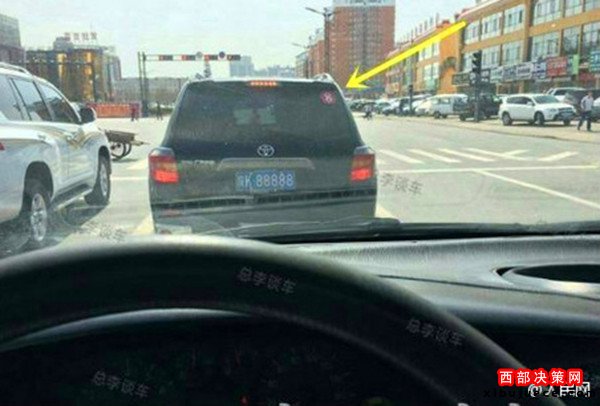 網(wǎng)友提供的照片顯示,懸掛“陜K88888”的車輛涉及奔馳、本田、豐田以及獵豹汽車4個(gè)車型、5輛車,其中豐田漢蘭達(dá)的后車窗玻璃上還張貼著“1”和“8”的字樣,分別位于車窗的左上角和右上角。