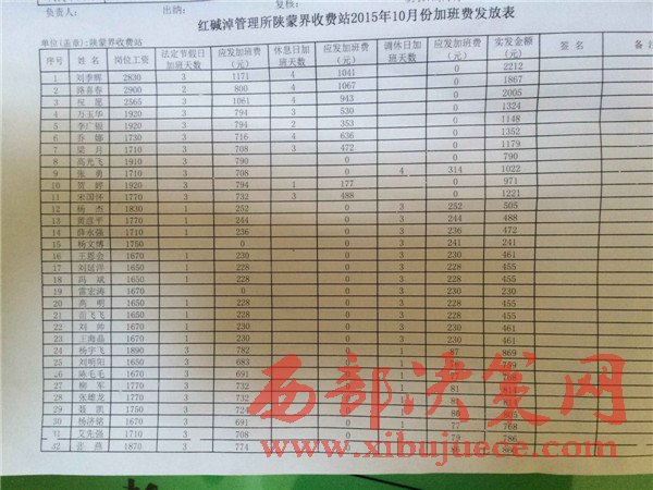 紀(jì)委王姓負(fù)責(zé)人告訴西部大開發(fā)雜志社記者菜價(jià)偏高確實(shí)從在,人已經(jīng)換掉,正在調(diào)查中,他們公司并未下過處罰,也未發(fā)現(xiàn)篡改考勤一事,不存在套取國(guó)家國(guó)有資金,并且給西部大開發(fā)雜志社記者拿出一塔資料,這就是陜蒙界收費(fèi)站的考勤表,西部大開發(fā)雜志社記者看到考勤表上確實(shí)沒有任何涂改痕跡,其中陜蒙界收費(fèi)站劉站長(zhǎng)的上班天數(shù)也是23天。西部大開發(fā)雜志社記者想要查看工資發(fā)放表格時(shí),得到結(jié)果還是無權(quán)了解。