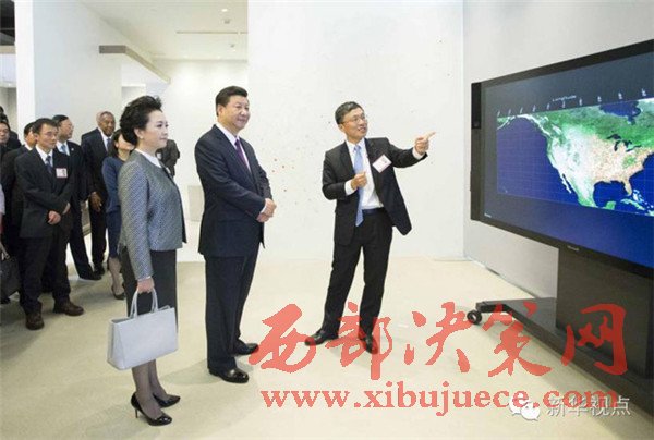 2015年9月23日,習(xí)近平參觀美國微軟公司總部。這是習(xí)近平夫婦觀摩大數(shù)據(jù)可視化系統(tǒng)展示。新華社記者蘭紅光攝