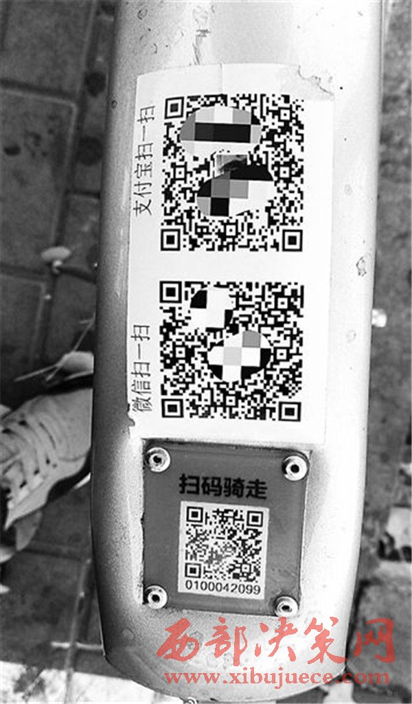 兩輛摩拜單車(chē)被貼上騙錢(qián)二維碼