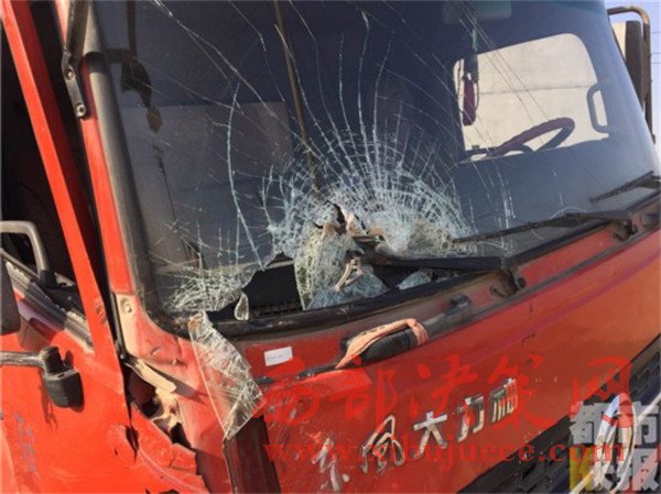 貨車(chē)司機(jī)王某:“我當(dāng)時(shí)正常行駛,然后就看見(jiàn)它(拉沙車(chē))從那邊先撞了一輛小轎車(chē),然后撞過(guò)來(lái),把我嚇的。”