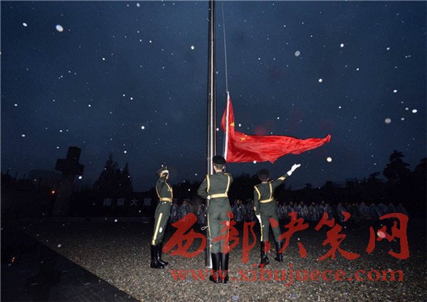 12月13日,江蘇省南京市,清晨7時(shí),五星紅旗從國(guó)旗桿頂部開(kāi)始緩緩下降,降至半旗位置固定。
