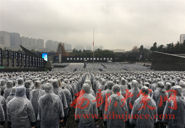 數(shù)千名各界代表冒雨參加國(guó)家公祭儀式