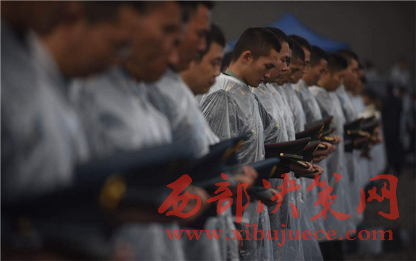解放軍官兵為遇難者默哀。
