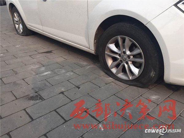 車(chē)主張先生:“剛開(kāi)始看見(jiàn)一個(gè)輪子被扎了,后來(lái)一看四個(gè)輪子都被扎了。”