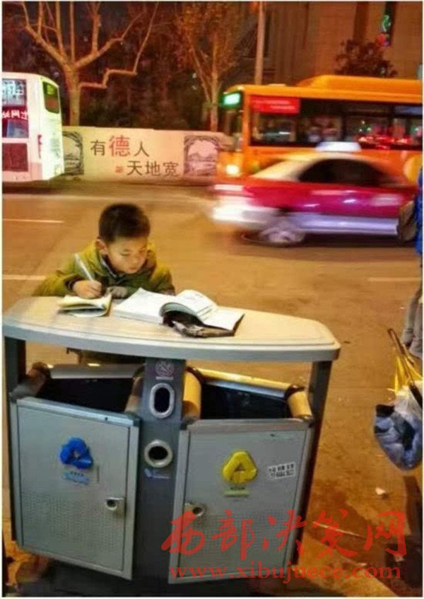 母親擺地?cái)?8歲男孩寒夜趴在垃圾桶上完成作業(yè)