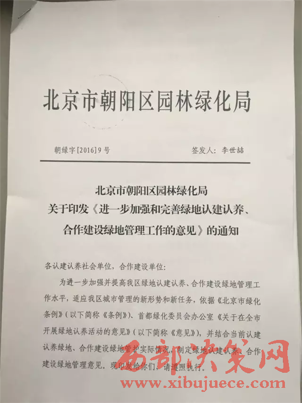 朝陽(yáng)區(qū)園林綠化局負(fù)責(zé)人承諾將對(duì)綠地認(rèn)養(yǎng)建立完善機(jī)制
