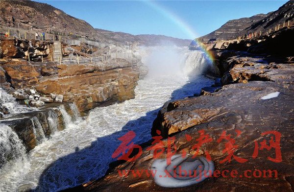 “千里黃河一壺收,旋流洪波濤如山”,到過(guò)壺口瀑布的人,都會(huì)被它驚濤拍岸、吞云吐霧的恢宏氣勢(shì)所震撼。豐水期的瀑布固然雄渾豪壯,而冬天的壺口也另有一番風(fēng)韻。冰掛晶瑩剔透,造型各異,與瀑布中飛舞的彩虹交相輝映,吸引了眾多游客。