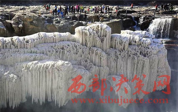 這些冰掛都是黃河水從瀑布傾瀉而下,冒起的水霧迅速凍結(jié)而成。兩岸的冰掛晶瑩剔透、造型各異,有的像龍須,垂懸在巖石上;有的如無(wú)暇白玉,鑲嵌在河岸旁。