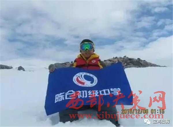 “看,那就是張家成!”,“張家成是陳倉初中的驕傲!”近日,陳倉初中九年級五班學生張家成去南極游學,而且他還把陳倉初中的校旗帶到了南極,從而成了校園里的“名人”。