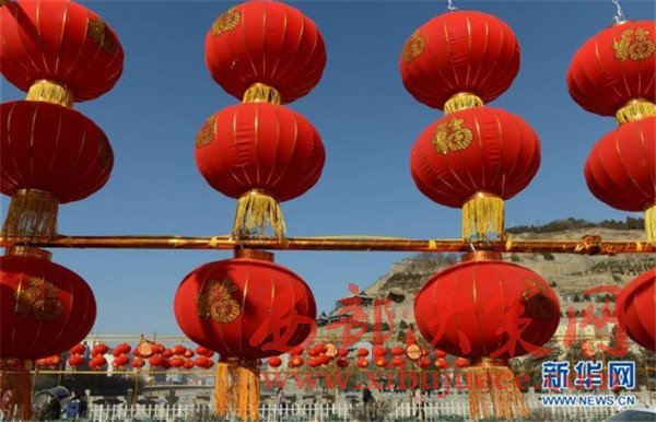 1月19日,延安市延河大橋上掛滿大紅燈籠。春節(jié)臨近,革命老區(qū)延安年味漸濃,街頭掛滿喜慶的大紅燈籠。