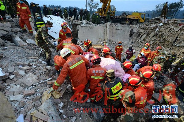 2月3日清晨,在浙江溫州文成民房倒塌事故現(xiàn)場,救援人員救出第二名幸存者。