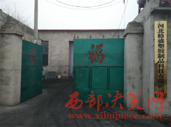 2017年1月5日,我社人員驅車趕往清河縣,實地了解情況,通過當?shù)卮迕裰敢业疥愋沾迕袼从车母袷⑺苣z制品科技有限公司。格盛塑膠廠位于葛仙莊鎮(zhèn)馬屯辦事處茶店村村南大路邊.我們看到門口、路上和其院內到處都是一些黑色的粉塵,覆蓋了路面,黑色的粉塵凸顯出車輛出入的印記。