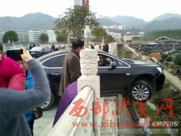 安康一男子開車撞斷橋梁護欄 車身懸空在大橋上