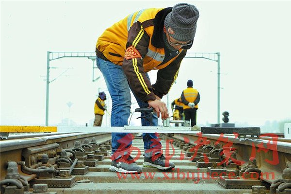 西安鐵路局綏德工務段職工檢查線路鋼軌狀況。該段通過機車添乘和徒步檢查等方式,加大對凍害、道岔等地段檢查力度,對發(fā)現(xiàn)問題,根據(jù)嚴重程度,及時申請臨時要點進行整治,確保春運期間運輸安全。