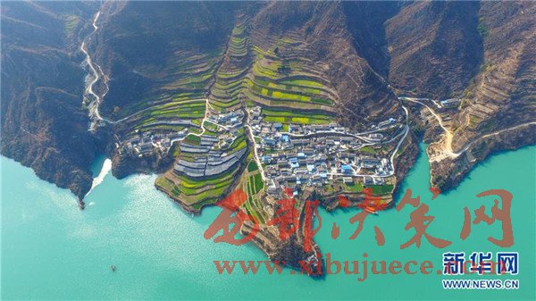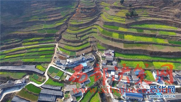 甘肅省隴南市文縣玉壘坪村山坡上的油菜花已開始綻放。隨著早春臨近,甘肅省隴南市文縣碧口水庫兩岸的油菜花開始綻放,為碧波蕩漾的白龍江畔點綴上金黃的色彩。