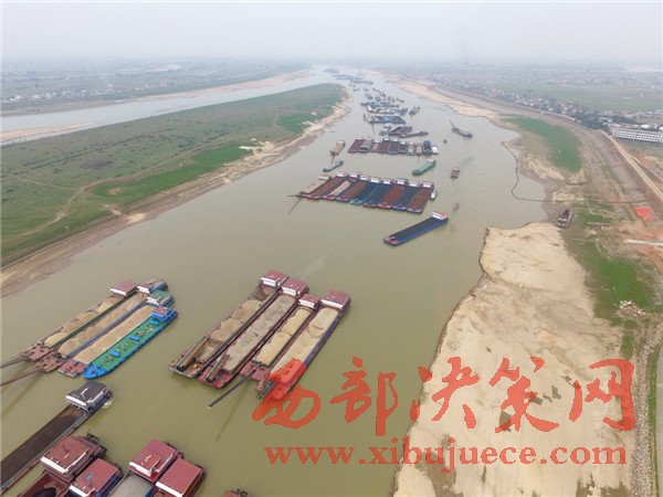 2月20日,船只擁堵在枯水期的湘江湘陰蘿卜洲航道內(nèi)。