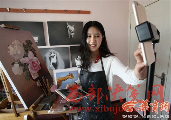 西安美院油畫(huà)專(zhuān)業(yè)畢業(yè)生"藍(lán)寶寶",為喜歡美術(shù)的粉絲直播自己畫(huà)畫(huà)。