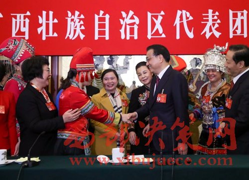 【李克強(qiáng)在廣西團(tuán)巧借“劉三姐”祝福全國女同胞】三八婦女節(jié)這天,李克強(qiáng)來到廣西代表團(tuán)參加審議報告。他首先祝在場的女代表及女同胞節(jié)日快樂??偫碚f:“廣西是劉三姐的家鄉(xiāng),她的歌聲至今余音繚繞,代表了女同胞美好的形象。我在這里向你們,并通過你們向全國女同胞致以節(jié)日的問候和衷心的祝福。”