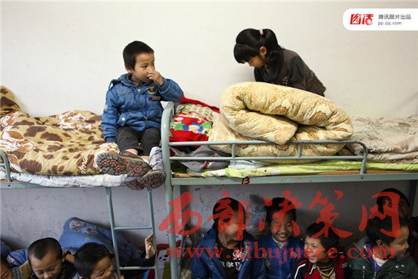 教育公益組織歌路營的數(shù)據(jù)顯示我國基礎教育階段寄宿制學生數(shù)量達3276萬,其中60%是留守兒童。2015年,歌路營發(fā)布了《中國農(nóng)村住校生調(diào)查報告》,在走訪了幾百所農(nóng)村寄宿校后,報告用“擠、險、臭”來形容農(nóng)村孩子糟糕的住宿環(huán)境。圖為2012年11月,浙江松陽縣大東壩鎮(zhèn)中心學校,住校的人太多床鋪緊張達不到一人一床的標配,常常安排兩個孩子睡在一起。