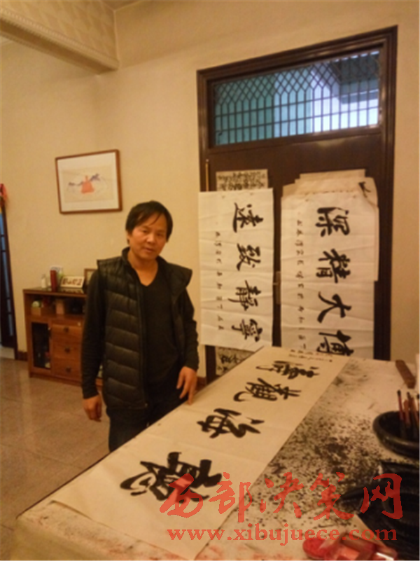 于是在今年的3月18日,經(jīng)過多次聯(lián)系我終于踏上尋訪神交已久的故人,初次看到他映入我的眼簾的是中等的身材蓄著長發(fā)三七分,方形臉,一個典型的關(guān)中漢子的形象。就是這樣一個默默無聞平凡無奇的人,當(dāng)他進(jìn)入蕓蕓眾生之中,尋找起來是那樣的不容易。