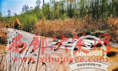 記者隨后從同一位置的浐河右岸(東岸)觀察,發(fā)現(xiàn)流入浐河的污水被河灘和雜草叢分成了十多股細(xì)流,從南向北陸續(xù)有四五十米長(zhǎng)。
