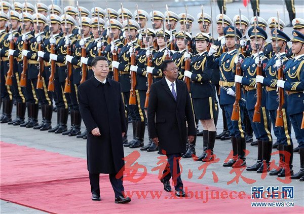 3月27日,國家主席習(xí)近平在北京人民大會堂同馬達(dá)加斯加總統(tǒng)埃里舉行會談。這是會談前,習(xí)近平在人民大會堂東門外廣場為埃里舉行歡迎儀式。