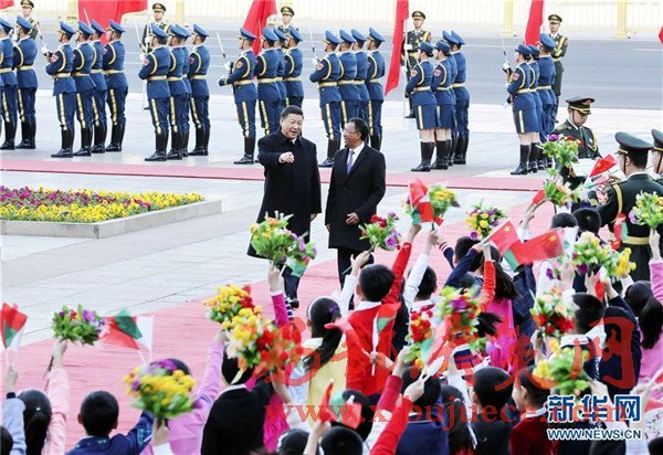 會談前,習(xí)近平在人民大會堂東門外廣場為埃里舉行歡迎儀式。習(xí)近平主席夫人彭麗媛、全國人大常委會副委員長嚴(yán)雋琪、國務(wù)委員楊潔篪、全國政協(xié)副主席李海峰等出席。