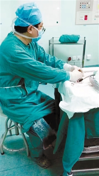 3月17日,正在手術(shù)臺上工作的袁家天突發(fā)急性輸尿管結(jié)石,出現(xiàn)劇烈疼痛,他讓手術(shù)室護士打了一針強效止痛針后,才堅持把手術(shù)做完。后來,在妻子的勸導(dǎo)下,他在泌尿外科做了輸尿管鏡碎石取石手術(shù)。就在手術(shù)前,他還在詢問第二天的手術(shù)安排,并且不顧勸說,堅持要親自主刀,“好多都是老病人,我也答應(yīng)人家親自主刀,而且患者病情危急,不能耽誤!”