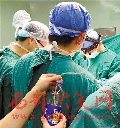 記者通過四川省人民醫(yī)院了解到,這張照片拍攝于3月17日,當(dāng)時省人民醫(yī)院住院部手術(shù)室二手術(shù)室間正在進行一臺Bentall+全主動脈弓置換+降主象鼻支架置入+冠脈搭橋術(shù)。這次手術(shù)持續(xù)了12個小時,從上午9點過開始,一直持續(xù)到晚上9點過結(jié)束。照片拍攝于下午5點,當(dāng)時巡回護士正在通過無菌引流管,給一直未進午餐的一助醫(yī)生喂可樂解渴。據(jù)了解,這樣的情況在心臟外科手術(shù)中很常見,也從一個側(cè)面說明了手術(shù)醫(yī)生不僅需要高精尖的專業(yè)技能、高強度的工作,還需要強壯的體魄!正是這些在封閉的手術(shù)間里全力以赴的醫(yī)護團隊,換來了一個個生命的奇跡。