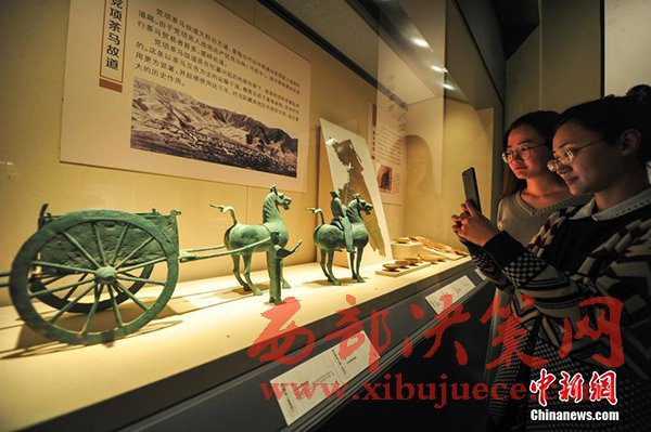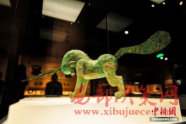 4月6日,遼寧沈陽展出的漢代青銅獨角獸,這件獨角獸出土于1956年的甘肅酒泉地區(qū)。“茶馬古道——西部八省區(qū)文物聯(lián)展”集合八省區(qū)12家博物館共計342件(組)文物,向觀眾展示“茶馬古道”這條世界上海拔最高的交通“生命線”,讓觀眾領(lǐng)略茶馬古道沿線的風土人情。