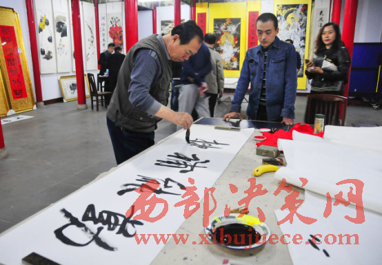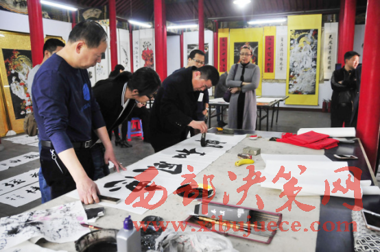 西部決策網(wǎng)-西部大開發(fā)訊(胡玉敏 通訊員 李海其 胡玉軍)4月13日下午,河北省邢臺市橋西區(qū)知聯(lián)會、邢臺市橋西區(qū)政協(xié)第三委員小組,在紫金公園聚義廳開展了書法文化交流活動?;顒犹匮沂兄麜嫾椰F(xiàn)場揮毫潑墨,切磋書畫技藝,創(chuàng)作作品20余幅。民盟市委副主委付曉婭,橋西區(qū)政協(xié)主席張建波、區(qū)政協(xié)副主席趙振群、王之良等領(lǐng)導(dǎo)應(yīng)邀參加。