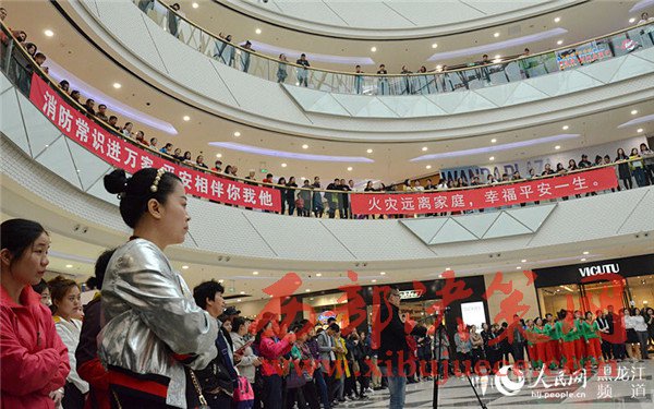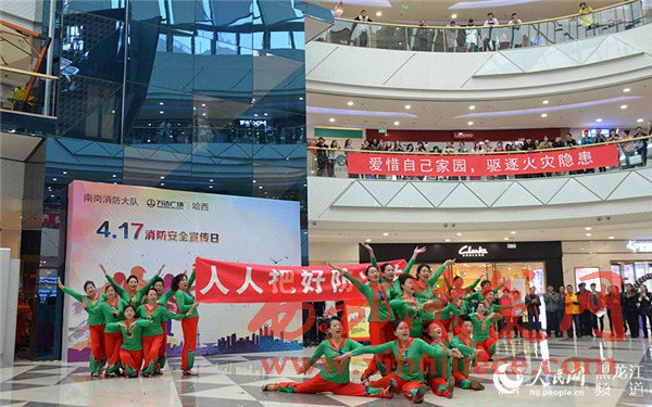 4月17日上午,在哈西萬達廣場以小虎隊經(jīng)典歌曲《愛》為背景音樂的舞蹈拉開了哈爾濱市消防支隊南崗大隊2017年“4·17”消防宣傳日活動的序幕。舞蹈的表演者全部為南崗大隊的消防官兵,歡快的樂曲和官兵們整齊的舞蹈動作吸引了市民紛紛駐足觀看宣傳活動。