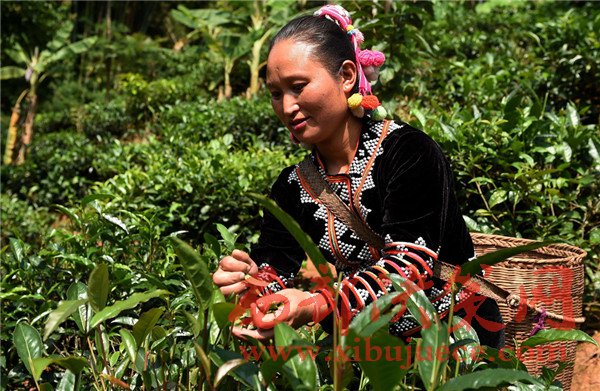 這是云南省瀾滄拉祜族自治縣酒井鄉(xiāng)老達保寨的拉祜族婦女李娜丕在采摘茶葉(2016年9月23日攝)。