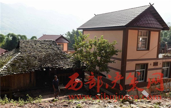 這是云南省西盟佤族自治縣勐梭鎮(zhèn)秧洛村的佤族村民巖昆家的舊房(左)和新房(2016年9月22日攝)。