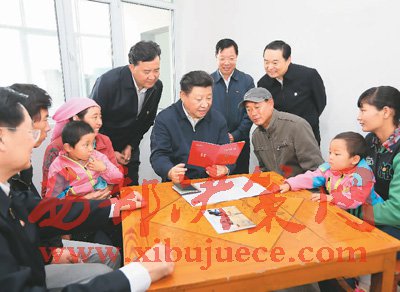 2016年8月23日上午,習(xí)近平在青海省海東市互助土族自治縣五十鎮(zhèn)班彥村村民呂有金家察看《扶貧手冊》,了解扶貧措施落實情況。