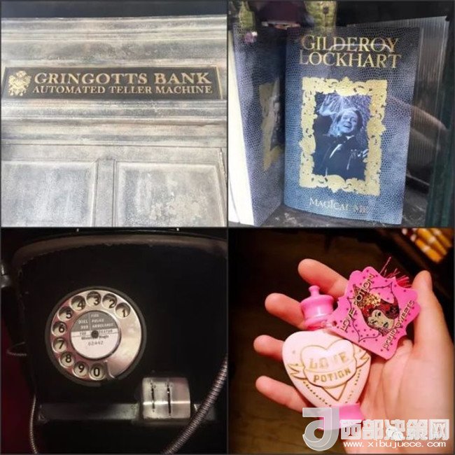 左下:電話亭里的魔法部 電話號(hào)碼;韋斯萊魔法笑料店的愛(ài)情魔藥