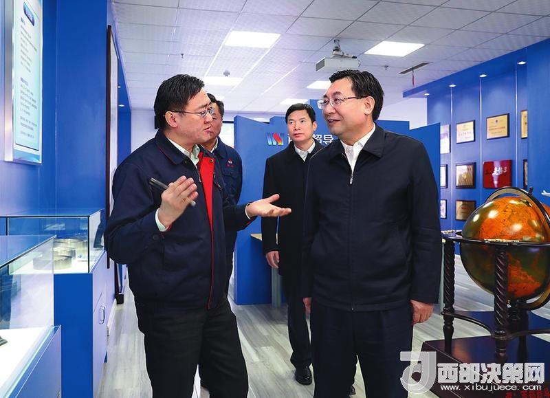 12月14日,省委書記、省長胡和平深入西北有色金屬研究院調研。圖為他在西部超導材料科技股份有限公司產品展示室聽取產品性能、應用領域等介紹。陜西日報記者宋紅梅攝