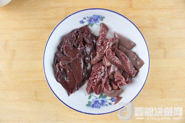 1.腰子和豬肝泡水去一下血水,豬肝切片,腰子切花備用
