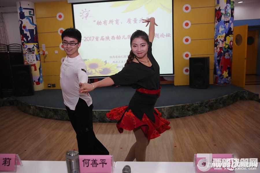 論壇上,西安市浐灞第二幼兒園的謝曉鳴和孩子們帶來(lái)的街舞表演點(diǎn)燃了全場(chǎng),讓大家感受到幼兒園男教師的熱情和激情;陜西師范大學(xué)幼兒園的韓凱帶來(lái)的鋼琴演奏《一壺美酒》傳達(dá)了深切的情感,讓人回味無(wú)窮;西航天鼎保育院的趙棟用挺拔健美的身姿表演的拉丁串燒,展現(xiàn)了生命自信的力量;電信十所幼兒園的孫博一只單簧管演奏,吹出了男教師細(xì)致柔情的一面;西安市雁塔區(qū)第一幼兒園的陳曉峰演唱的《祖國(guó),慈祥的母親》讓我們領(lǐng)略了幼兒園男教師專(zhuān)業(yè)的唱功和對(duì)職業(yè)的自信;西北工業(yè)大學(xué)幼兒園教師董樂(lè)帶領(lǐng)小朋友展示了動(dòng)感的啦啦操和籃球活動(dòng),場(chǎng)上的小運(yùn)動(dòng)員自信的運(yùn)球、上籃、投球,矯健的身姿,專(zhuān)注的表情,默契的配合,感染著在場(chǎng)的每一位教師;西安市第五保育院肖波和陜西睿星體育一群陽(yáng)光帥氣的男教師組織的趣味體能游戲?qū)⒒顒?dòng)氣氛推向了高潮。