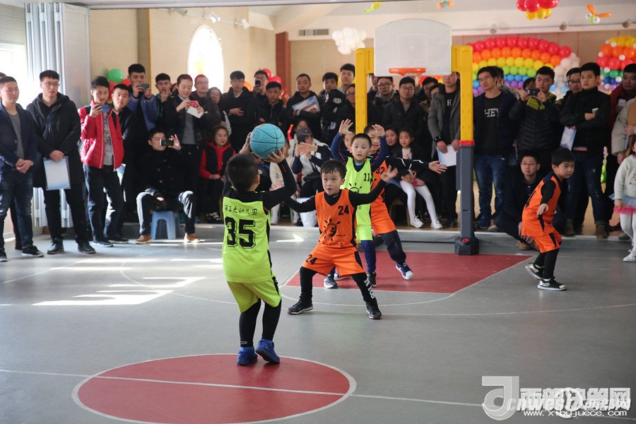 西北工業(yè)大學(xué)幼兒園教師董樂(lè)帶領(lǐng)小朋友展示籃球教學(xué)活動(dòng)。