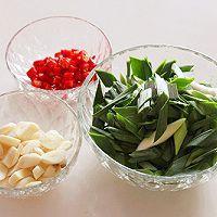 3. 趁煮肉的時(shí)候,將青蒜苗切段、紅辣椒切段、蒜切片備用。