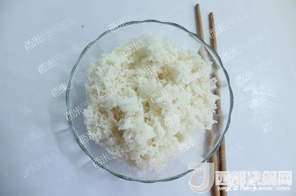 米飯熟了后,立刻打散晾涼,最好是隔夜的,因?yàn)榻?jīng)過了一個(gè)晚上,米飯里面的水份已被蒸發(fā)的差不多,這個(gè)時(shí)候炒米飯,就不會(huì)結(jié)成團(tuán)。而是粒粒分明。如果是用的厚厚的鐵板旺火快炒,就能發(fā)現(xiàn)飯粒在鐵板上跳動(dòng)。